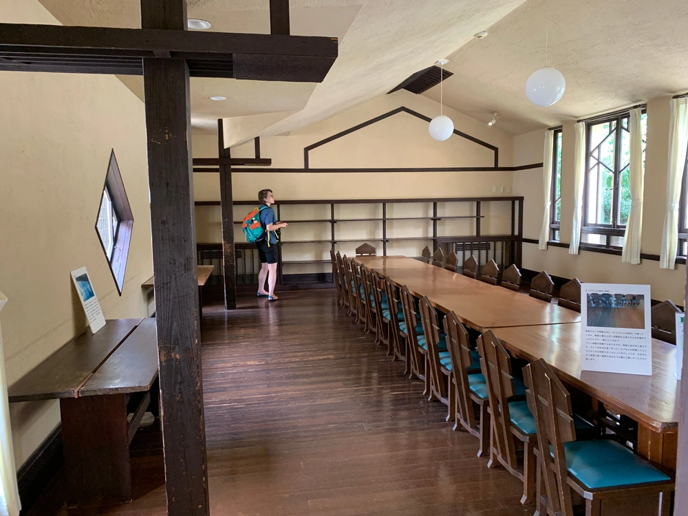 1921- ben épült lányiskolaként. 13 évig működött benne az iskola majd alumni tevékenységeknek adott otthont. Tokio külvárosában található, kb 20 percnyire Shinjuku-tól. Az egyik legjobb programunk volt még azzal együtt is, hogy mivel táborbontós nap volt csomagokkal jöttünk ide. Frank Lloyd Wright-nak két japán munkája maradt fent, ez azok közül az egyik. Tervező: Frank Lloyd Wright és Arata Endo