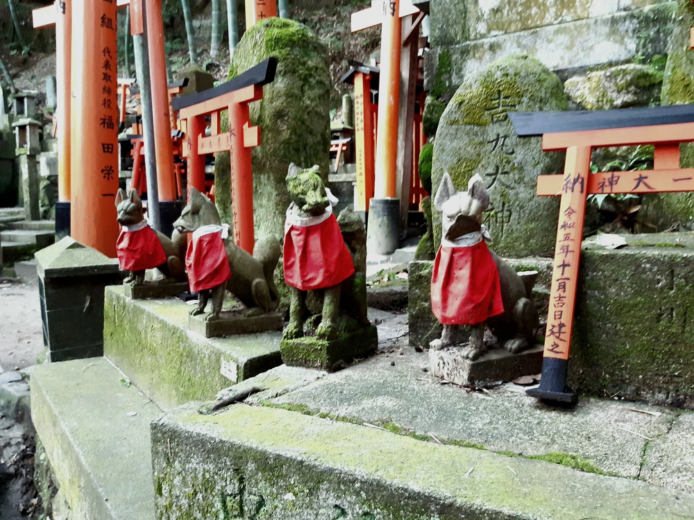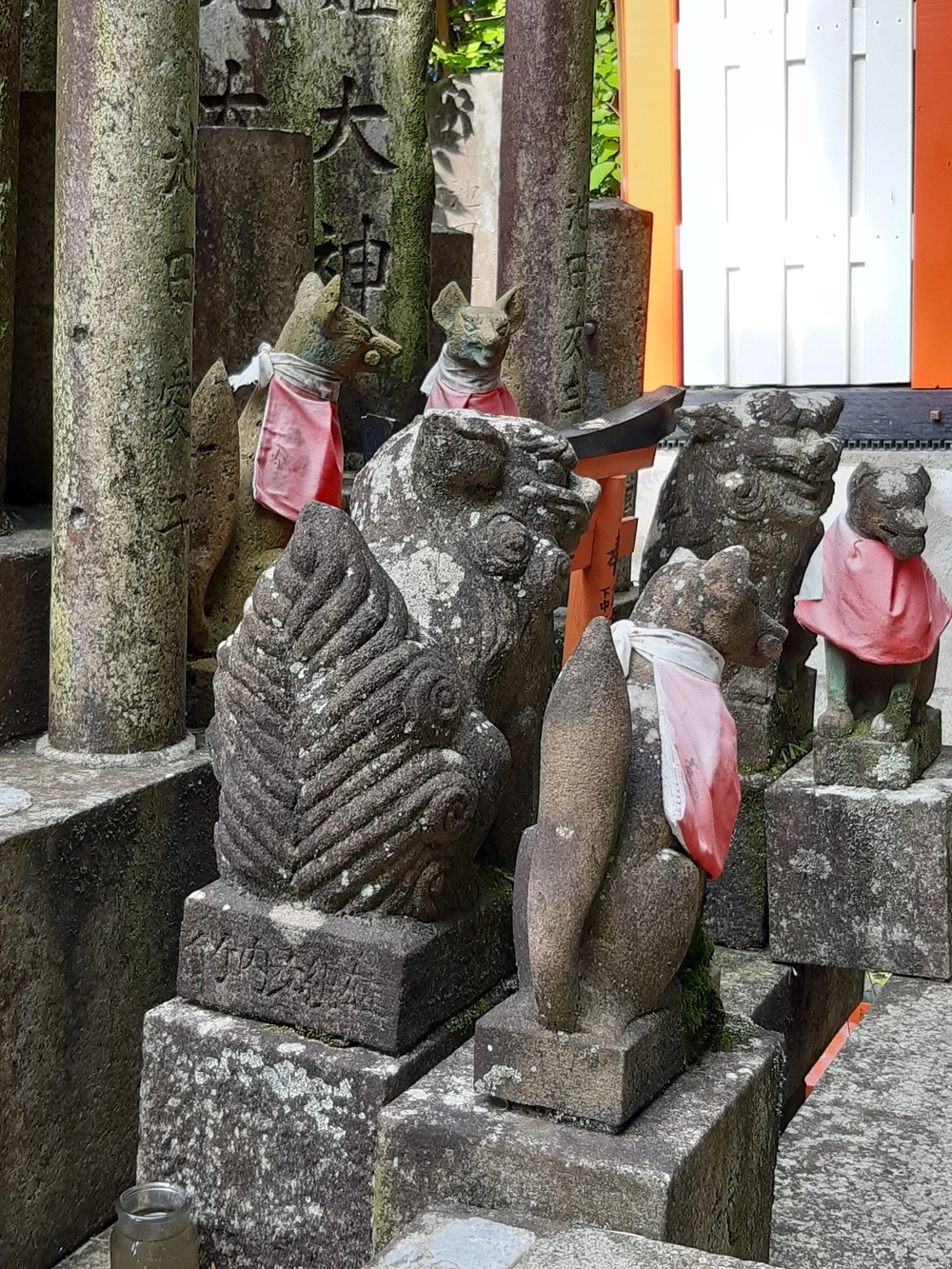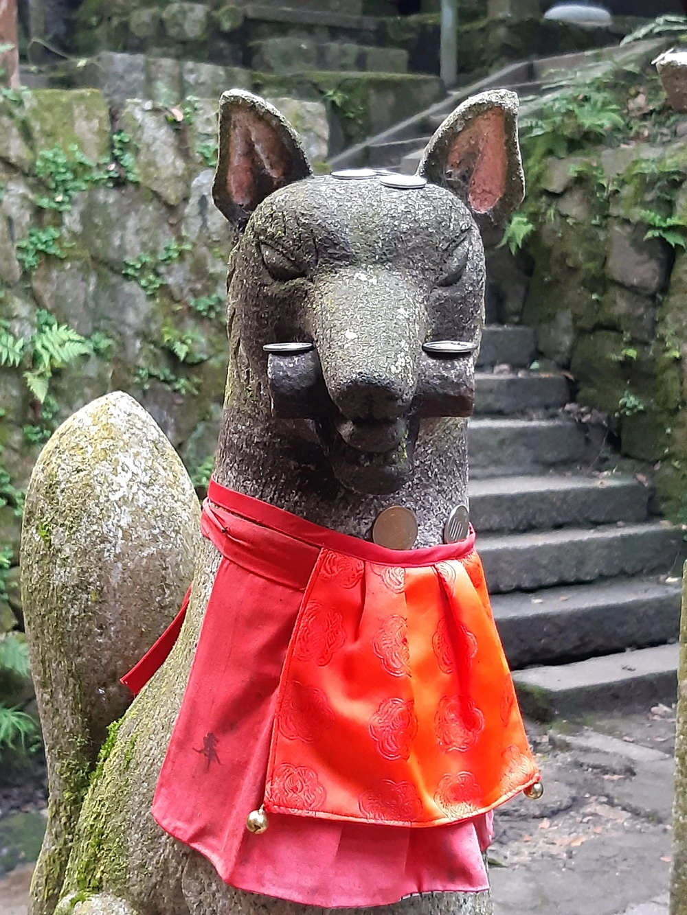 Hogy ne legyen túl hosszú a poszt, kettébontom: egy csomó állatszobor van útközben!🤩🤩 A róka a legjellemzőbb, mert ő őrzi a rizstározóhoz tartozó kulcsot, és ugye az egész szentély a rizsről szól... szóval a városrész és maga a szentély is tele van rókákkal 🦊🦊🦊