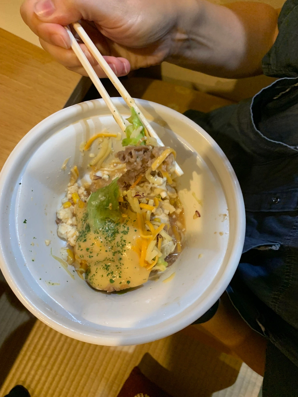 A minősége tulajdonképp jó, nem olyan bazári mint egy McBurger vagy egy PizzaHut de csodát nem érdemes várni, a rizs és a husi korrekt, a tojás oké, a sajt oké, ami nem volt jó az a savanyított mustárlevelük az egy fillért nem ért. De azon kevés hely wgyike ahol van sajt, itt alig van sajt, sajtsóvárgunk 🤤