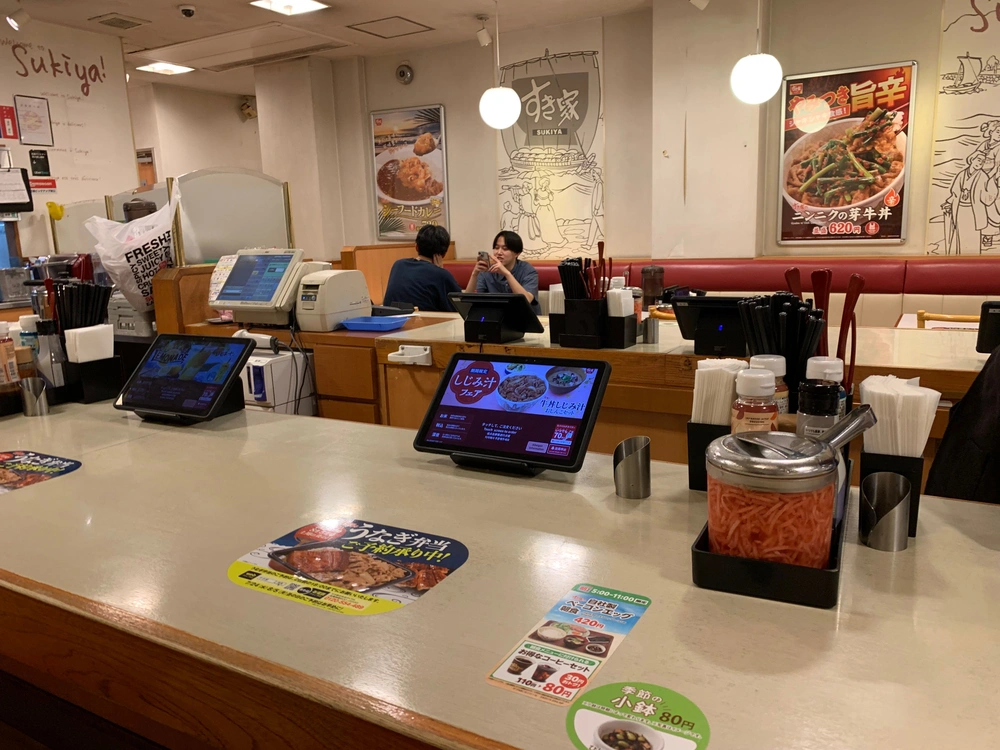 Így találtunk rá a Sukiya nevű láncra, ami japánon kívül gyakorlatilag ismeretlen . Itt viszont egy 500Milliárd Yenes forgalmú gyorsétteremlánc. Ők hamburger helyett Gyūdon-ban utaznak ami kb marha rizzsel. Mottojuk "kevesebb idő, kevesebb pénz" és tényleg szuper olcsó, gyorsnak nem olyan gyors mint egy burger de hasonló.